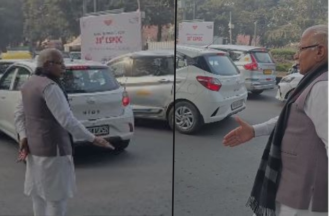 ट्रैफिक जाम खुलवाने के लिए खुद सडक़ पर उतरे केंद्रीय मंत्री मनोहर लाल खट्टर