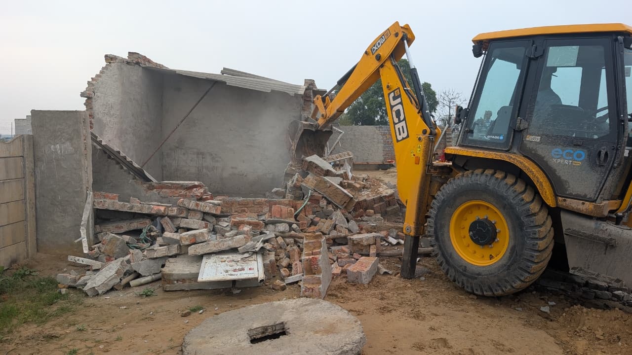 गुडगांव, ब्यूरो : बुधवार को डीटीपी दस्ते खेडकी दौला थाना क्षेत्र के अर्न्तगत भांगरोला गांव के राजस्व क्षेत्र में अनापुलिस बल की सहायता से अनधिकृत कॉलोनियों पर सफलतापूर्वक विध्वंस अभियान चलाया गया।विध्वंस अभियान के दौरान कुल 2 अनधिकृत कॉलोनियों को ध्वस्त किया गया। विवरण इस प्रकार है। पहली कार्रवाई भांगरोला गांव के राजस्व क्षेत्र में स्थित 2 एकड़ क्षेत्र की एक कॉलोनी में 3 डीपीसी (100 मीटर) की चारदीवारी व एक मजदूर क्वार्टर को ध्वस्त किया गया।