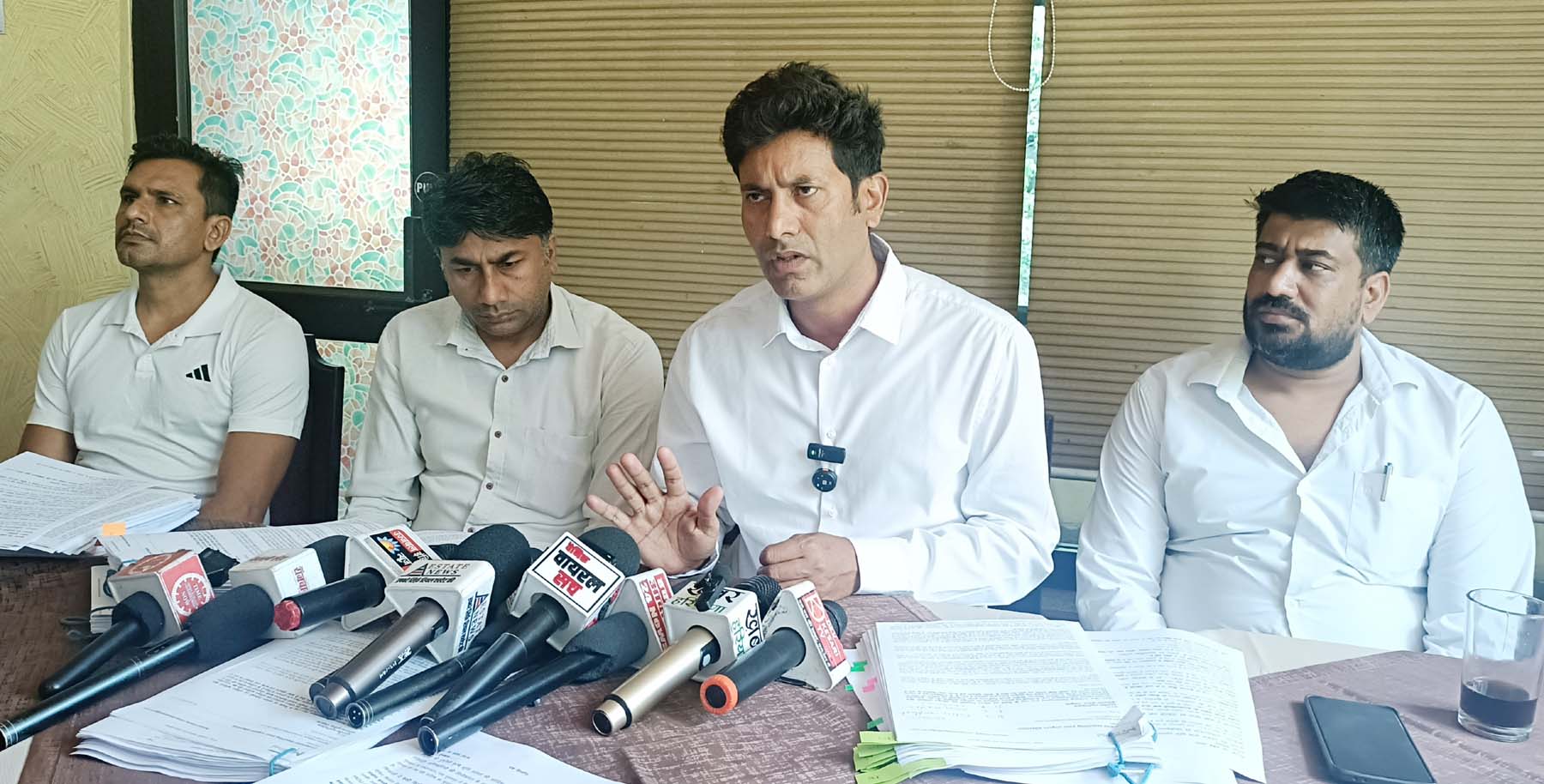 गड़गांव ब्यूरो : जिला के गांव धुमसपुर सेक्टर-67ए में एक बिल्डर पर गांव के किसानों की बेशकीमती पुश्तैनी जमीन हड़पने का आरोप लगाया है। बृहस्पतिवार को शमा पर्यटक केंद्र में प्रेस कांफ्रेंस गांव के किसानों ने कहा है कि कोर्ट के स्टे के बावजूद फर्जी रजिस्ट्री कराई दी गई।