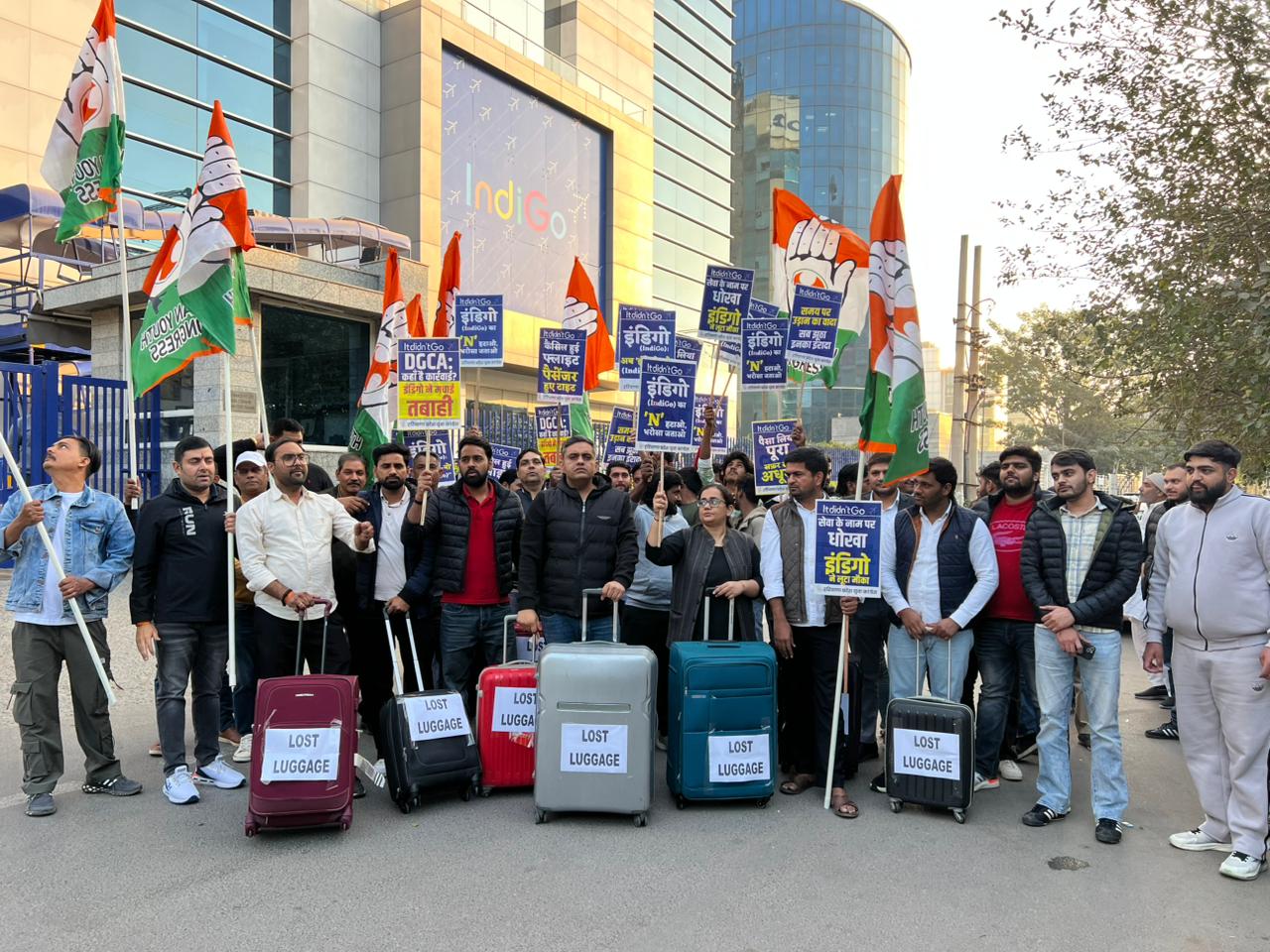 हरियाणा युवा कांग्रेस का इंडिगो ऑफिस पर प्रदर्शन