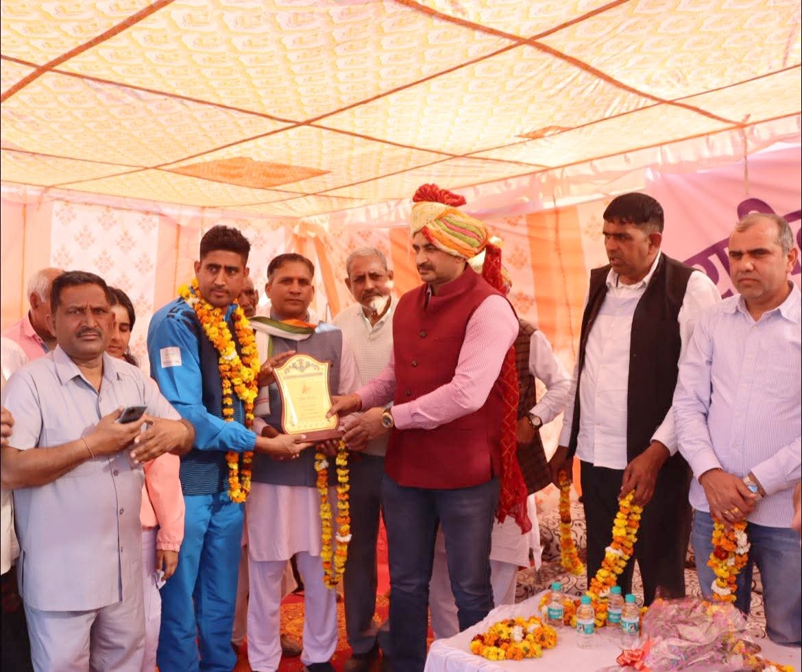 गुड़गांव, ब्यूरो): अबू धाबी में आयोजित हुई मास्टर्स कराटे चैंपियनशिप में गोल्ड मेडल लेकर लौटे गांव राठीवास के बेटे रवि दत्त भारद्वाज का ग्राम पंचायत द्वारा भव्य स्वागत किया गया। दिल्ली पुलिस में कार्यरत रवि दत्त भारद्वाज ने अबू धाबी में सम्पन्न हुए ओपन मास्टर्स गेम्स में एक गोल्ड मेडल और एक सिल्वर मेडल जीतकर अंतर्राष्टीय स्तर पर अपने गांव, जिला और हरियाणा का नाम रोशन किया। चाचा एडवोकेट बलवान भारद्वाज व महेंद्र भारद्वाज ने बताया 6 से 15 फरवरी तक अबू धाबी में आयोजित की गई इस प्रतियोगिता में दुनियाभर के खिलाड़ियों को हराकर रवि दत्त भारद्वाज ने यह उपलब्धि हासिल की है।