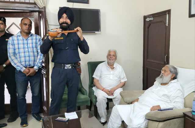 चंडीगढ़ (चन्द्र शेखर धरणी): हरियाणा के ऊर्जा, परिवहन एवं श्रम मंत्री श्री अनिल विज की सुरक्षा में तैनात पीएसओ एएसआई भूपिंद्र सिंह ने आज ऊर्जा मंत्री के समक्ष देशभक्ति पर आधारित पंजाबी गीत गुनाया। भूपिंद्र सिंह ने तुम्बी वाद्य यंत्र जोकि पंजाब के लोक संगीत से जुड़ा है उसे बजाते हुए गीत गुनाया ….