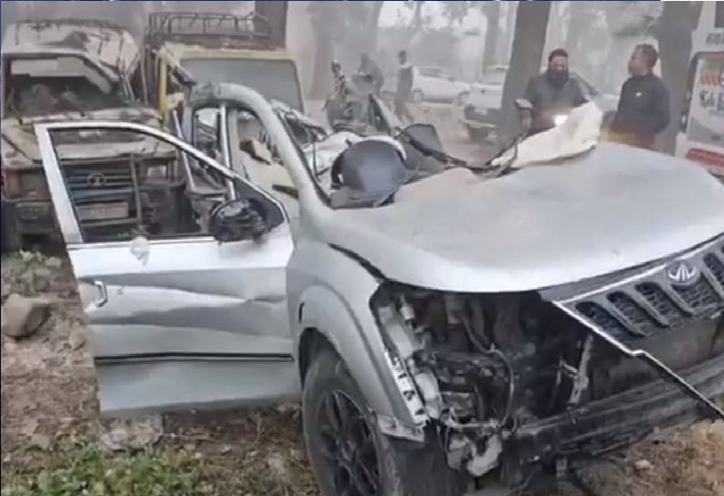 Accident: सड़क किनारे खड़े ट्रक से टकराई हरियाणा नंबर की SUV कार, चार युवकों की मौत