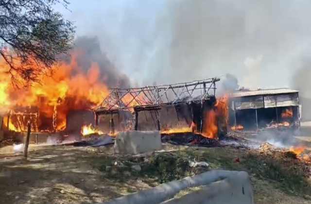 पलभर में उजड़ गया आशियाना ; भीषण आग से 12 छप्पर पूरी तरह जलकर राख, गांव में मचा हाहाकार
