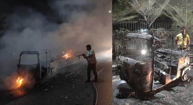 एक्सप्रेसवे पर आग की लपटों में घिरा ऑटो, चालक जिंदा जला