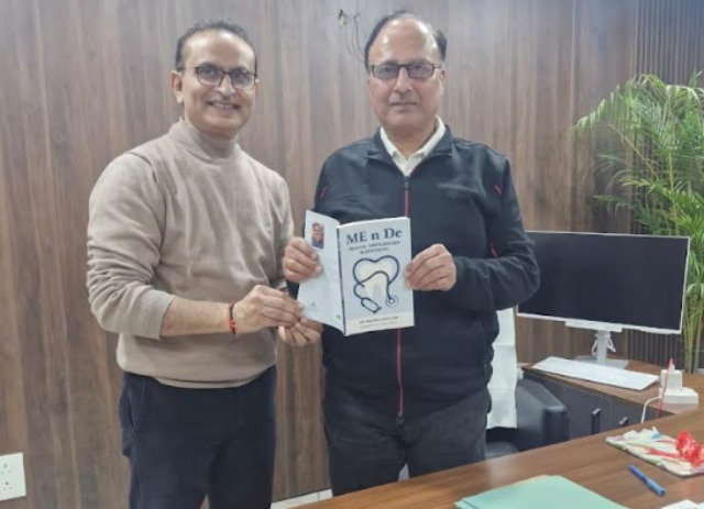 चंडीगढ़ (धरणी) : ओरल एवं मैक्सिलोफेशियल सर्जन डॉ. पंकज शौरी द्वारा लिखित पुस्तक “Medical Emergencies in Dental Practice – A Practical Chairside Guide” का हाल ही में सिविल अस्पताल पंचकूला में लोकार्पण किया गया। पुस्तक का विमोचन सिविल अस्पताल पंचकूला के प्रधान चिकित्सा अधिकारी डॉ. आर.एस. चौहान ने किया। डॉ. पंकज शौरी वर्तमान में जनरल अस्पताल, सेक्टर-6 पंचकूला में तैनात हैं और उन्हें दंत चिकित्सा एवं ओरल एवं मैक्सिलोफेशियल सर्जरी के क्षेत्र में 26 वर्षों से अधिक का अनुभव है। वह हरियाणा के उन चुनिंदा डेंटल सर्जनों में शामिल हैं, जिन्होंने सिविल अस्पताल, सामुदायिक स्वास्थ्य केंद्र, प्राथमिक स्वास्थ्य केंद्र, हेड ऑफिस और सरकारी डिस्पेंसरी सहित स्वास्थ्य सेवाओं के विभिन्न स्तरों पर कार्य किया है।