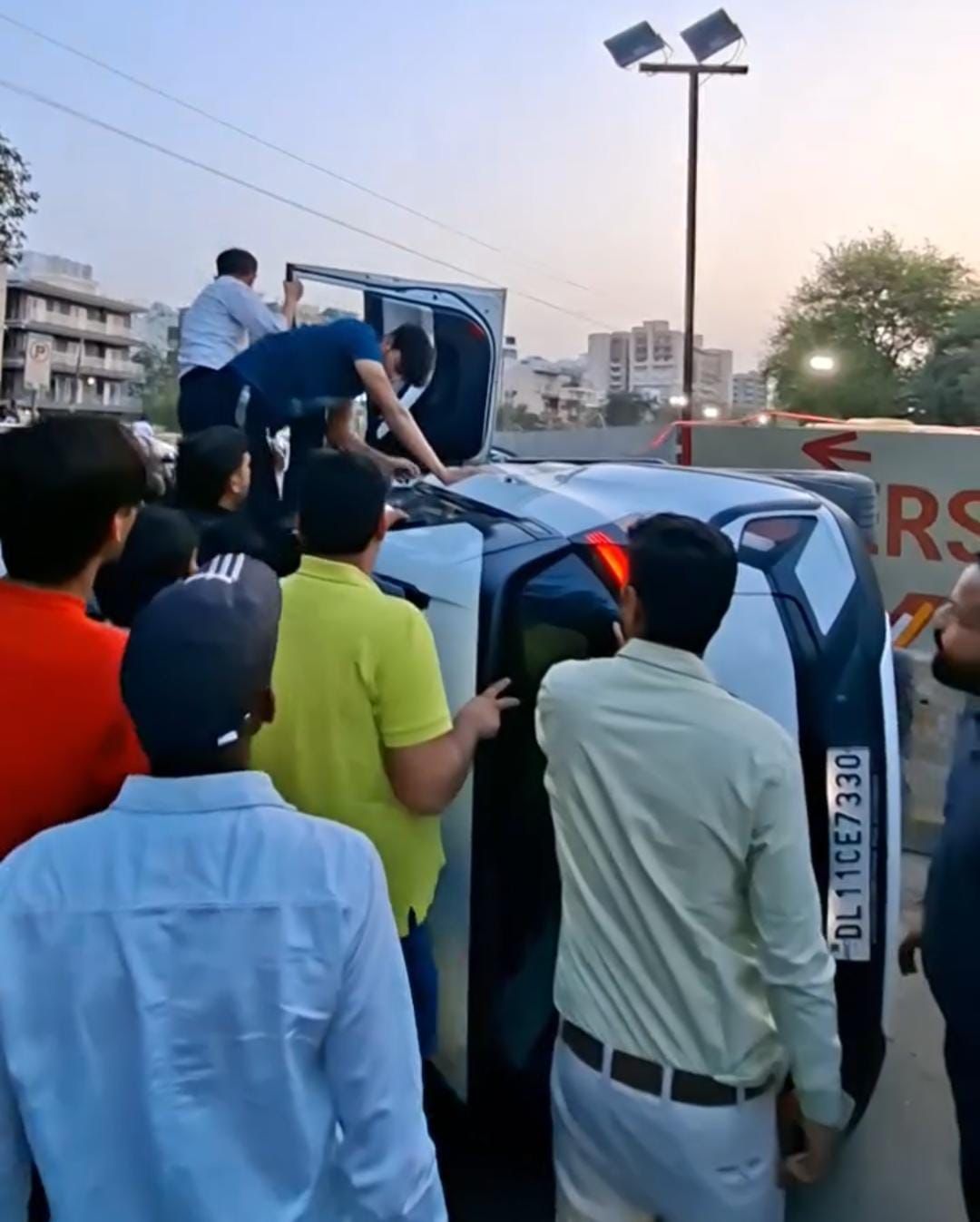 प्रत्यक्षदर्शियों के अनुसार टाटा की नैक्सन कार ड्राइवर सामान्य गति से जा रहा था, तभी मेट्रो के बैरिकेड्स में से एक अचानक तिरछा हो गया। कार उसमें उलझ गई और पलटकर सड़क पर जा गिरी। कार में सवार ड्राइवर बाल-बाल बच गया। उसकी हालत स्थिर बताई जा रही है, हालांकि वह सदमे में है। हादसे के बाद सड़क पर जाम लग गया। राहगीरों और पुलिस की मदद से जाम को खुलवाया गया। वहीं, सूचना मिलते ही पुलिस मौके पर पहुंची और पलटी हुई कार को सड़क से साइड कराया। पुलिस का कहना है कि मामले की जांच की जा रही है। यह पता लगाया जा रहा है कि आखिर बेरिकड अचानक तिरछा कैसे हो गया।