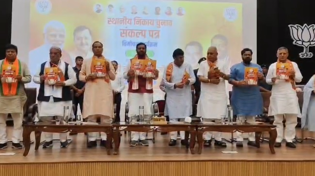 पंचकूला : मुख्यमंत्री नायब सिंह सैनी ने आज पंचकूला में भाजपा के प्रदेश कार्यालय "पंचकमल" के अटल सभागार में नगर निकाय चुनाव के लिए भाजपा के "संकल्प पत्र" (घोषणा पत्र) का विमोचन किया।