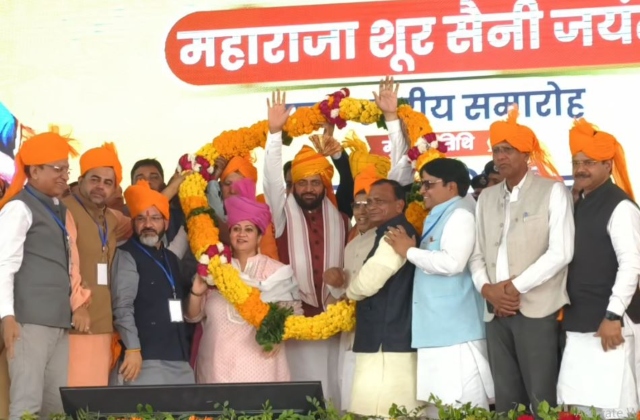 नारनौल (भालेंद्र यादव) : नारनौल में आयोजित राज्य स्तरीय महाराजा शूर सैनी जयंती समारोह में हरियाणा के मुख्यमंत्री नायब सिंह सैनी ने रविवार को मुख्य अतिथि के रूप में शिरकत की। यह कार्यक्रम हरियाणा सरकार की महापुरुषों की जयंती मनाने की श्रृंखला के अंतर्गत आयोजित किया गया था।