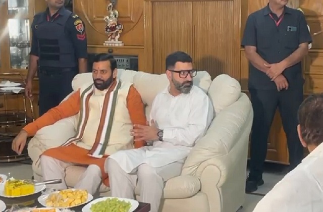 सिरसा(सतनाम): सिरसा में आज एक दिलचस्प और अहम राजनीतिक मुलाकात देखने को मिली, जब सीएम नायब सिंह सैनी अचानक सिरसा से कांग्रेस विधायक के आवास पर पहुंचे। यह मुलाकात इसलिए भी चर्चा में रही क्योंकि गोकुल सेतिया कांग्रेस के विधायक हैं, जबकि नायब सिंह सैनी बीजेपी से विधायक और हरियाणा के मुख्यमंत्री हैं। मुख्यमंत्री के साथ हरियाणा सरकार की कैबिनेट मंत्री श्रुति चौधरी और सिरसा की पूर्व सांसद सुनीता दुग्गल भी मौजूद रहीं।