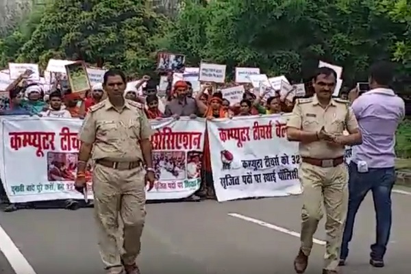 11 दिन से आमरण अनशन पर बैठे कंप्यूटर टीचर्स सड़कों पर उतरे