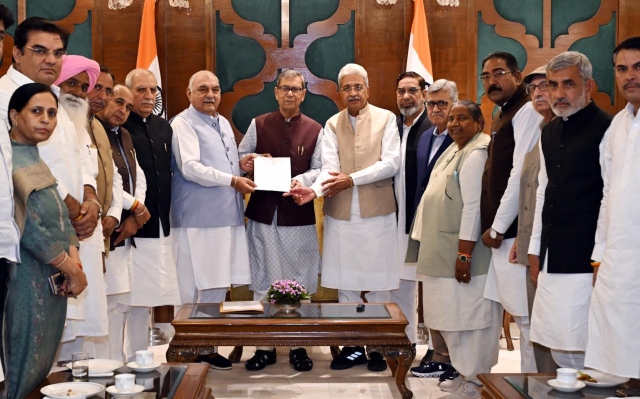 भूपेंद्र सिंह हुड्डा और राव नरेंद्र के नेतृत्व में कांग्रेस विधायक दल ने राज्यपाल को सौंपा ज्ञापन