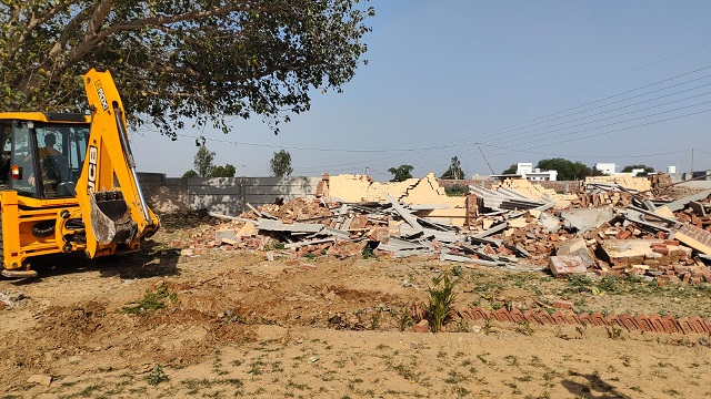 फर्रुखनगर, (ब्यूरो): क्षेत्र फर्रुखनगर स्थित ताजनगर फ्लाईओवर के पास विकसित की जा रही अवैध कॉलोनी में तोडफ़ोड़ मंगलवार को डीटीपी मनीष यादव व ड्यूटी मजिस्ट्रेट नायब तहसीलदार नरेंद्र व एसटी प्रशांत की टीम द्वारा किया गया।