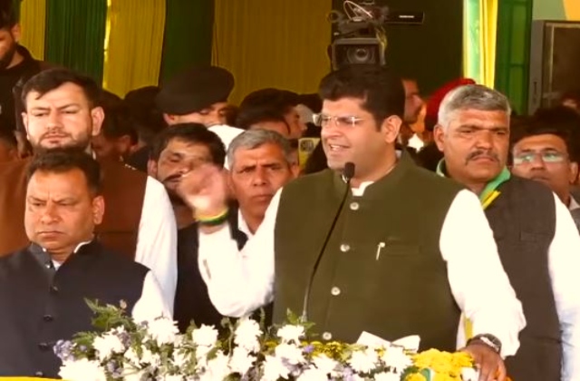 पूर्व उप मुख्यमंत्री और JJP नेता दुष्यंत चौटाला ने मंच पर पहुंचते ही समर्थकों का अभिवादन किया। अपने संबोधन में उन्होंने गठबंधन राजनीति पर बड़ा बयान देते हुए कहा कि यदि 2019 के चुनाव बाद JJP ने बीजेपी से गठबंधन न किया होता तो उनके दल के सात विधायक पार्टी छोड़ देते। उन्होंने कहा कि गठबंधन इसलिए किया गया ताकि राजनीतिक रास्ते खुले रहें, भले ही परिणाम उम्मीदों के अनुसार न रहे हों।