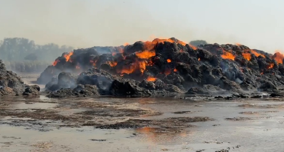 लापरवाही ने बरपाया कहर: करनाल में किसान के गन्ने की पाती का स्टॉक जलकर राख, 35 लाख का भारी नुकसान