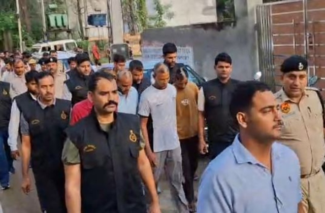 पलवल (गुरुदत्त गर्ग) : पलवल जिले के धोलागढ़ गांव में हाल ही में हुई करीब 55 लाख रुपए की डकैती की वारदात का पुलिस ने खुलासा किया है। स्पेशल स्टाफ और कैंप थाना पुलिस ने संयुक्त कार्रवाई करते हुए चारों आरोपियों को गिरफ्तार कर लिया। गिरफ्तारी के बाद पुलिस ने आरोपियों की गांव में परेड कराई और उन्हें उस स्थान पर लेकर गई, जहां डकैती की घटना को अंजाम दिया गया था।