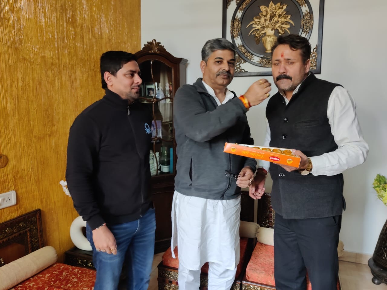 चंडीगढ़(चंद्र शेखर धरणी): हरियाणा सरकार के मीडिया सचिव प्रवीण आत्रेय ने राजस्थान, मध्यप्रदेश और छत्तीसगढ़ में भारतीय जनता पार्टी की प्रचण्ड जीत पर बात करते हुए कहा कि इस प्रचण्ड जीत से जहां कांग्रेस को निराशा हाथ लगी तो वहीं भारतीय जनता पार्टी के कार्यकर्ताओं में खुशी की लहर है। रविवार को नतीजे आते ही भारतीय जनता पार्टी के कार्यकर्ता प्रवीण आत्रेय के आवास पर पहुंचे और लड्डू खिला कर जीत का जशन मनाया ।
