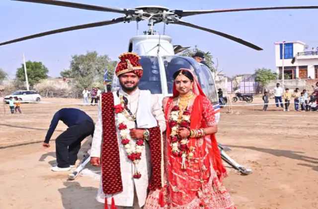 भिवानी: भिवानी जिले के सिवानी क्षेत्र के तलवानी गांव में रविवार को एक अनोखी और यादगार शादी विदाई देखने को मिली। ममता वर्मा ने अपने पति हितेश वर्मा के साथ हेलिकॉप्टर में बैठकर शादी के बाद विदाई लेकर अपने सपने को पूरा किया। विवाह समारोह तलवानी गांव में संपन्न हुआ। ममता वर्मा, तलवानी निवासी जिले सिंह भाटीवाल और सुमित्रा देवी की पुत्री हैं। उनके पति हितेश वर्मा राजस्थान के हनुमानगढ़ जिले के ढाणी राईकान निवासी दौलतराम सिंहमार और निर्मला देवी के बेटे हैं।