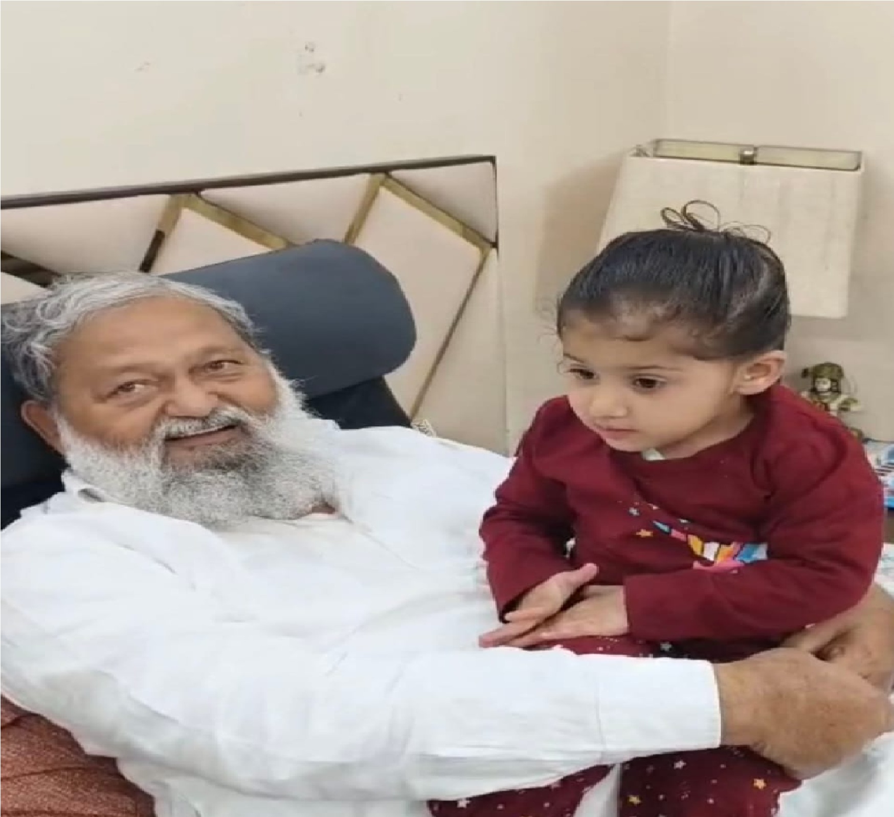 आपको बता दे कि अनन्या अनिल विज जी की छोटी नातिन है। इससे बड़ी नातिन वान्या के साथ खेलते हुए भी इनकी तस्वीर खूब अखबारों की सुर्खियां बन चुकी है। अनिल विज के दोनों पैरों पर प्लास्टर चढ़ा है और दोनों नातिन वान्या और अनन्या ने अपने नन्हे प्यारे हाथों से इस प्लास्टर पर शानदार पेंटिंग की है। जिसे देखकर इनसे मिलने आए सभी लोग बेहद हैरान व खुश तो होते ही हैं लेकिन इस पेंटिंग की चर्चा भी सभी करते हैं।