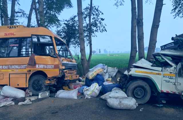 सिरसा में धुंध के चलते स्कूल बस से टकराई पिकअप, ड्राइवर की मौत, मौके पर मची चीख-पुकार