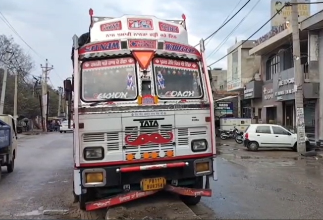 Tohana: बाइक सवार को बचाने के चक्कर में डिवाइडर पर चढ़ा ट्रक, टला बड़ा हादसा