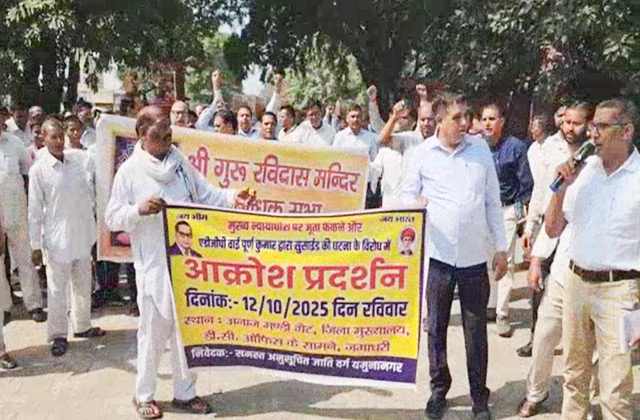 यमुनानगर (परवेज खान) : आईपीएस वाई. पूरण कुमार आत्महत्या मामले को लेकर हरियाणा में दलित समाज का गुस्सा लगातार बढ़ता जा रहा है। यमुनानगर समेत राज्य के कई हिस्सों में दलित समाज के लोगों ने सड़कों पर उतरकर जोरदार प्रदर्शन किया। यमुनानगर में दलित समाज के लोग नई अनाज मंडी में एकत्रित हुए और वहां से पैदल मार्च करते हुए लघु सचिवालय पहुंचे, जहां उन्होंने डीजीपी शत्रुजीत कपूर और एसपी नरेंद्र बिजलानिया की गिरफ्तारी की मांग को लेकर प्रशासन को ज्ञापन सौंपा।