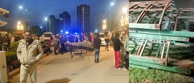 रोड पर लगाए गार्टर को हटवा रहा था बिल्डर, मजदूर पर गिरा, मौत के बाद परिजनों का हंगामा, लगाया जाम