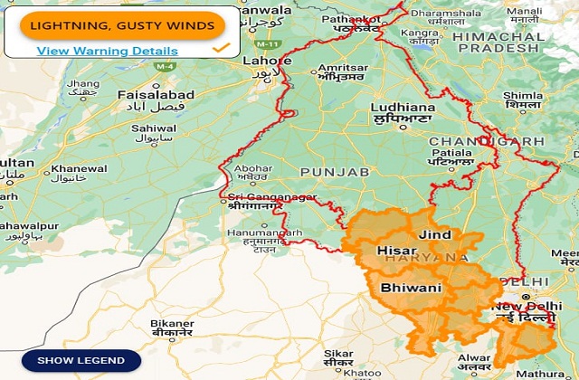 मौसम विभाग के पूर्वानुमान के अनुसार अगले तीन घंटों में हरियाणा के हिसार, जींद, भिवानी, चरखी दादरी, महेंद्रगढ़, रेवाड़ी, झज्जर, गुरुग्राम, नूंह जिलों व आसपास के क्षेत्रों में हल्की बारिश के हो सकती है। इस दौरान उपरोक्त दिए गए कुछ एक स्थानों पर तेज बारिश की भी संभावना बन रही है। वहीं बता दें की हरियाणा में यमुना नदी के बढ़ते जलस्तर के कारण यमुना के आस पास के कई गांव बाढ़ की चपेट में हैं। इसलिए आज हाथिनीकुंड बैराज के 18 गेट बंद कर दिए गए हैं। जिससे 2 दिन बाद यमुना का जलस्तर घटने और बाढ़ से राहत मिलने की उम्मीद जताई जा रही है।