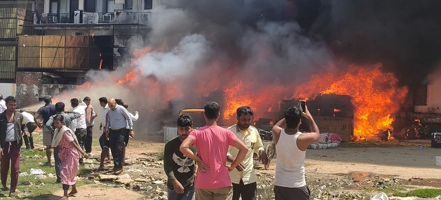 पॉश एरिया के बीच बसी झुग्गियों में आग का तांडव, मकान भी लिया चपेट में
