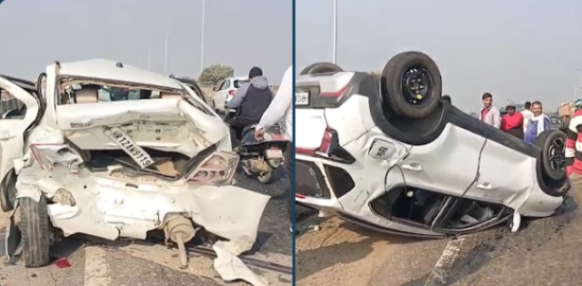 (PICS) बहादुरगढ़ बाईपास पर बड़ा हादसा, एक के बाद एक आपस में टकराई 3 गाड़ियां, कई लोग घायल