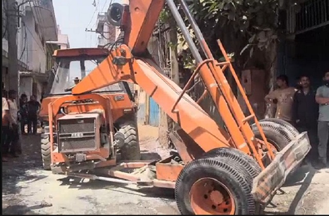 Faridabad : बड़ा हादसा टला..हाईटेंशन लाोइन की चपेट में आई हाइड्रा मशीन, दो घायल