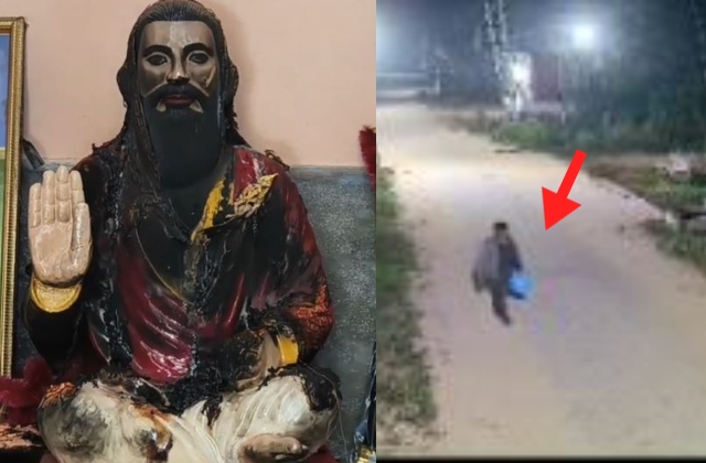 पुलिस के अनुसार वही व्यक्ति मूर्ति में आग लगाने के बाद माचिस की तीली वहीं छोड़कर निकल गया। अधिकारियों ने बताया कि उसकी पहचान अभी स्पष्ट नहीं है, लेकिन फुटेज के आधार पर उसे तलाशा जा रहा है।