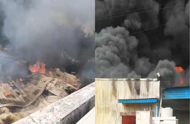 डेस्कः गुरुग्राम के बिनौला औद्योगिक क्षेत्र में कपड़ों के एक बड़े वेयरहाउस में भीषण आग लग गई। आग की लपटें इतनी तेज थीं कि आसपास के इलाकों से काला धुआं दिखाई देने लगा। सूचना मिलते ही फायर ब्रिगेड की 15 गाड़ियां मौके पर पहुंचीं और आग बुझाने का प्रयास शुरू किया।