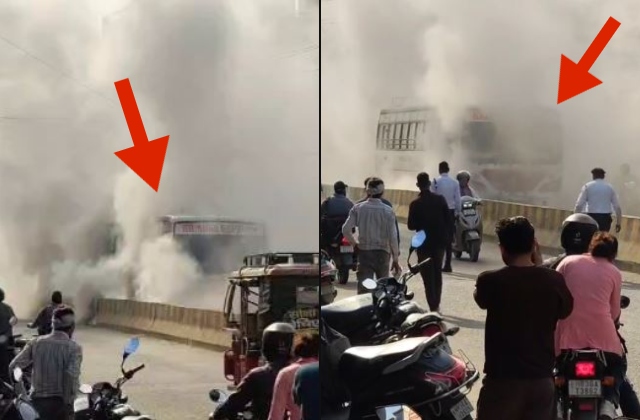 घटना के बाद कुछ समय के लिए यातायात भी प्रभावित रहा। पुलिस ने मौके पर पहुंचकर स्थिति को संभाला और आग लगने के कारणों की जांच शुरू कर दी है। प्रारंभिक जांच में आग लगने का कारण बस में तेल का रिसाव बताया जा रहा है।