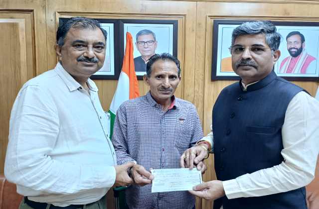 चंडीगढ़ (चन्द्र शेखर धरणी): हरियाणा के मुख्यमंत्री के मीडिया सेक्रेटरी प्रवीण अत्रेय ने मीडिया वेल बिंग एसोसिएशन (रजिस्टर्ड) की ओर से हरियाणा सचिवालय के प्रेस रूम में कार्यरत शक्ति चंद शर्मा को आर्थिक सहायता के रूप में 20 हजार रुपये की राशि प्रदान की।
