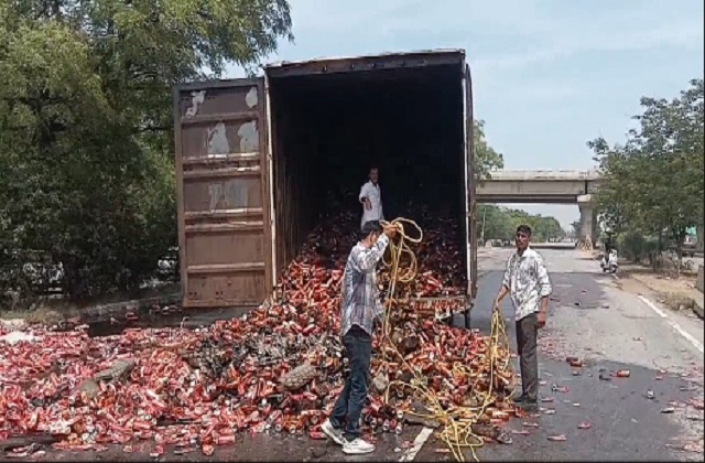 अंबाला(अमन): दिल्ली अमृतसर नेशनल हाईवे पर गांव मोहड़ा के पास खाली बियर की कैन से भरे एक कंटेनर में अचानक आग लग गई जिसकी चपेट में एक बाइक सवार भी आकर घायल हो गया । सूचना मिलते ही डायल 112 की गाड़ी और फायर ब्रिगेड की गाड़ी मौके पर पहुंची और आग पर काबू पाया गया ।