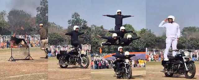 गुड़गांव, (ब्यूरो): अक्सर आपने लोगों को तो बाइक पर स्टंट करते देखा होगा, लेकिन आज गुड़गांव में पुलिसकर्मियों द्वारा ही बाइक पर स्टंट किए गए। यह स्टंट कहीं और नहीं बल्कि प्रदेश के मुख्यमंत्री नायब सिंह सैनी के सामने ताऊ देवीलाल स्टेडियम में किए गए। मौका था 77वें गणतंत्र दिवस का और इस दौरान गुड़गांव में आयोजित राज्य स्तरीय कार्यक्रम के दौरान हरियाणा पुलिस ने विशेष तौर पर बाइक शो का आयोजन किया। देश भक्ति और संस्कति से ओतप्रोत कार्यक्रमों के दौरान गुड़गांव पुलिस के जवानों ने अपने शौर्य की गाथा को भी मुख्यमंत्री के समक्ष रखा जिसे मुख्यमंत्री ने भी खूब सराहा। इसके अलावा पुलिस के डॉग शो की भी मुख्यमंत्री ने काफी प्रशंसा की।