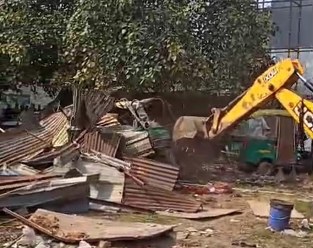 कुख्यात बदमाश रिक्की की प्रॉपर्टी पर चला बुलडोजर