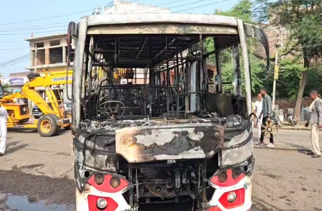 रोहतक में धू-धूकर जली बस, फायर ब्रिगेड ने मुश्किल से पाया काबू, बड़ा हादसा टला