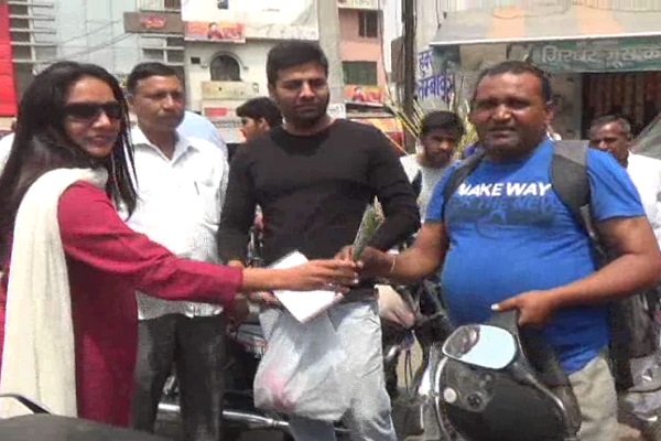 SDM ने ट्रैफिक नियम का पालन करने वाले चालक को फूल देकर किया सम्मानित