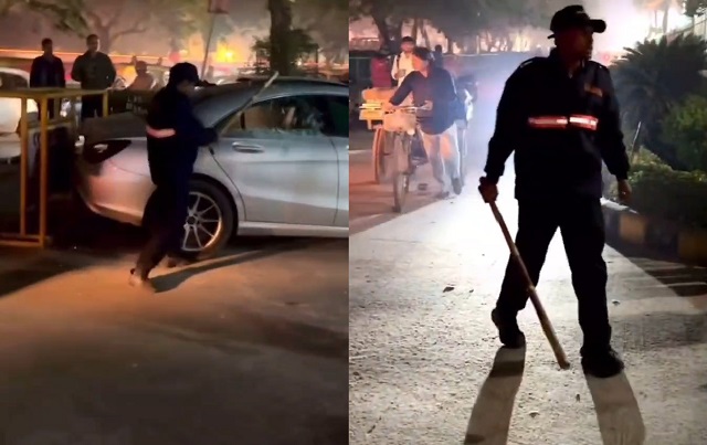 सिक्योरिटी गार्ड या गुंडे- बेरिकेड हटाने के विवाद में हुआ झगड़ा, मर्सडीज के शीशे तोड़े
