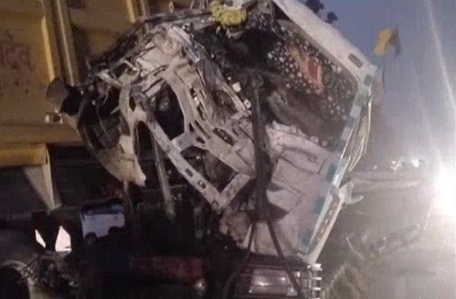 स्विफ्ट डिज़ायर का टायर फटने से ट्राले से भीषण टक्कर, कार के उड़ गए परखच्चे... 3 लोग घायल