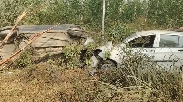सड़क हादसा ऐसा भी! गाड़ी टूटी, पेड़ टूटा...चालकों को खरोंच तक नहीं आई, भयानक मंजर देख सहमे लोग