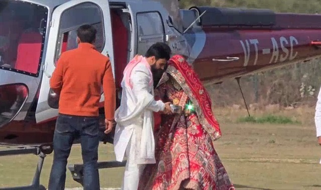 हेलीकॉप्टर से आई दुल्हन, देखने के लिए उमड़ी भीड़