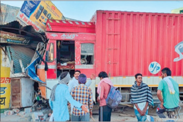 ट्रक का स्टेयरिंग फेल, बेकाबू होकर तीन दुकानों में घुसा