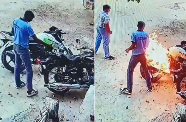रेवाड़ी (महेंद्र भारती) : रेवाड़ी के मोहल्ला छिपटवाड़ा में देर रात दो युवकों ने एक घर के बाहर खड़ी दो मोटरसाइकिलों को पेट्रोल डालकर आग के हवाले कर दिया। आगजनी की यह सनसनीखेज वारदात CCTV कैमरे में कैद हो गई है। फिलहाल पुलिस मामले की जांच कर रही है।