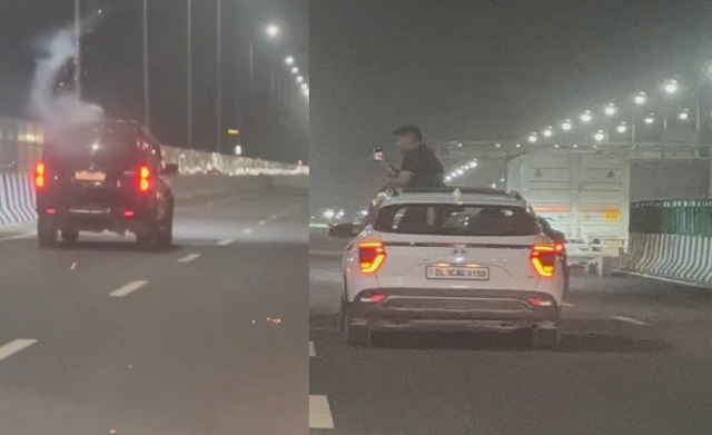 द्वारका एक्सप्रेसवे पर स्टंटबाजों का कहर, चलती गाड़ी की छत से की आतिशबाजी, Video Viral