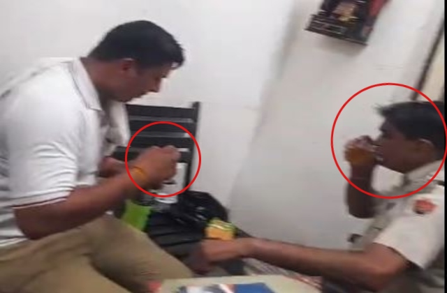 चौकी में ड्यूटी के दौरान 2 पुलिसकर्मी शराब पीते मिले, सोशल मीडिया पर Video Viral