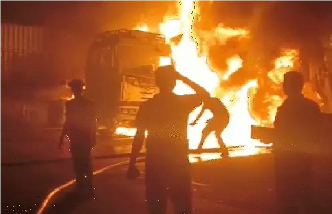 Haryana में दो ट्रकों में लगी आग, अफरा तफरी मची...ऑनलाइन वेबसाइट के सामान से भरा था ट्रक