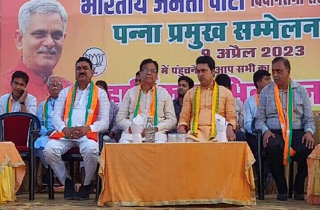 पन्ना प्रमुख सम्मेलन को सबोंधित करते हुए हरियाणा प्रभारी देब ने कहा कि हरियाणा में एक पूर्व मुख्यमंत्री की सोच भूमि पर कब्जे करने वाली थी और दूसरे मुख्यमंत्री ने ऐसे ऐसे लोगों को नौकरियां दी, जिन्हें हस्ताक्षर तक करने नहीं आता। जब से हरियाणा में भाजपा की सरकार आई है, हरियाणा में मेरिट पर नौकरियां मिल रही है। आने वाले दिनों में 1 लाख सरकारी नौकरियां देंगे। हरियाणा प्रभारी ने कहा कि भाजपा का कार्यकर्ता परिश्रम से कभी नहीं घबराता। देश और हरियाणा में कार्यकर्ताओं के पसीने से सरकार बनी है। विपक्ष ने भी मान लिया है कि 2024 में फिर से भाजपा की सरकार बनेगी। उन्होंने पन्ना प्रमुखों से आव्हान किया कि जिस तरह हरियाणा के लोग मजबूत होते हैं। वैसे ही कार्यकर्ता फील्ड में मजबूती से काम करेंगे और लोगों तक सरकार की योजनाओं को पहुंचाने का काम करेंगे।